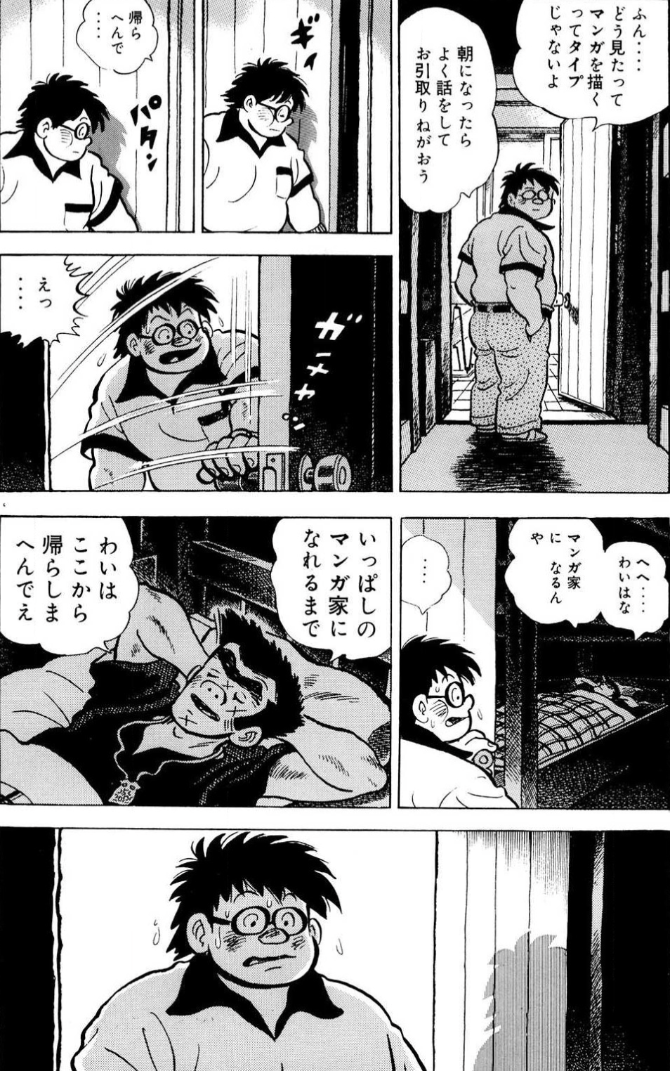 銀次を追い出さず受け入れる優しさと、マンガにかける信念。その対比からも、彼がどれだけマンガと向き合っているのかがわかります。銀次がマンガを甘く見る態度をとれば本気で怒り、こんこんと心得を説く。それでも自身のネーム室を貸し、見捨てることはありませんでした。